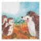 Mãe ouriço e ouriços jovens. Ilustração de livro para um livro de fotografia "A história do inverno branco" escrito e ilustrado por Julia Doria.