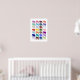 Este poster colorido apresenta um padrão de silhuetas de elefante em múltiplas cores. Adicione um quadro e este impressão divertido será a adição perfeita ao quarto de qualquer criança.