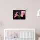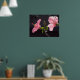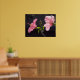 O trabalho artístico original neste Poster é uma peça suave e gentil do jardim, mas com o ousado contraste de rosa e preto. As flores de hibisco nesta fotografia original são um rosa rico contra um fundo quase negro. A foto é um perfil das flores na flor do cheio, com pétalas recheadas e caule amarelo de pólen com pontos vermelhos na ponta. A luz do sol brilha sobre as folhas verdes primavera, e um novo botão floral emerge.