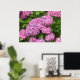 Um belo poster ou impressão com estas elegantes e profundas hipnades cor-de-rosa enfiadas entre uma bela sombra de folhagem verde.