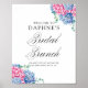 Dê as boas-vindas aos convidados com um toque suave e romântico usando este cartão de boas-vindas para café da manhã da noiva, apresentando hidrangeas azuis e rosadas em aquarela. O elegante design floral define o tom para uma bela celebração e combina perfeitamente com festas no jardim, chá de panela ou temas de primavera e verão. Personalize o cartão com o nome da noiva e os detalhes do chá para criar uma primeira impressão calorosa e convidativa. Esta peça adiciona um elemento coeso e elegante à sua decoração e ajuda a guiar os convidados à medida que chegam.