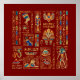 Poster Hieróglifos egípcios e divindades em vermelho