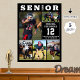 Create a custom sports photo collage poster ideal for high school senior night recognition, sports awards ceremony or banquet or graduation party decor utilizing this easy-to-upload photo collage template showcasing 5 pictures in various shapes and sizes with the title SENIOR incorporating their class year and your athlete's name, jersey number or school initials, school name and/or mascot name or your custom text in your choice of text and background colors you can change to school colors in EDIT (shown with white text on black). OPTIONS: The sample is shown in an 18x24" size; other sizes are available (choose Custom Size for even borders by changing the height and width with equal number of inches AFTER clicking the UNLOCK icon that looks like a chain link next to the Height and Width fields). You can also transfer the design to a foam board, banner or other products. NEED IT FAST? Consider ordering the digital download file under FORMAT on the ordering page to print locally. ASSISTANCE: For design assistance, contact the designer BEFORE ORDERING via the Zazzle Chat MESSAGE tab or email makeitaboutyoustore@gmail.com.