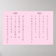 Este poster prático mostra personagens Hiragana e Katakana com pronúncia fonética romaji para ajudá-lo a aprender e lembrar personagens japoneses básicos.