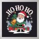 Uma design de Natal com o texto "Ho Ho Ho". Há um Pai Natal com uma roupa verde e um chapéu vermelho