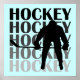A black silhouette hockey player and text that reads "Hockey" on hockey T-shirts, tote bags, cards, stickers, mugs, iPad and iPhone cases, keepsakes, posters, and other hockey apparel and gifts, perfect for hockey players or hockey fans!