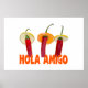 Hola Amigo. Três pimentões quentes, três amigos em sombreros. Texto Hola Amigo. Impressões, presentes e camisas engraçados por diversão e bom humor.