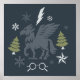 Check out this icon of Buckbeak the hippogriff surrounded by winter holiday icons such as fir trees, snowflakes, stars, and Harry Potter icons such as his glasses and lightning bolt icon!