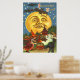 Pôster Homem Na Lua Black Cat Witch Bat Moon Owl