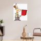 Um homem olhando curioso para uma caixa vermelha. Esta design parece realmente eficaz nestes Poster