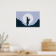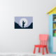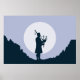 Um poster gráfico com ilustração de uma silhueta de um homem vestindo um kilt e tocando gaita de foles à luz da lua. O fundo é um terreno rochoso, tudo numa atmosfera de sonho escocês. Esta arte de parede será perfeita para decoração de casa ou escritório.