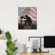 Honra os caídos com uma última saudação. Em homenagem aos nossos membros mortos das forças armadas. Os joelhos soldados em frente ao túmulo do camarada caído. Ao fundo, a bandeira dos EUA.