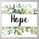 A design apresenta a palavra Hope aninhado dentro buquê de folhas de eucalipto. Parte do Conjunto Fé/Esperança/Amor - 1 Corintianos 13:13. Faz um presente excelente!