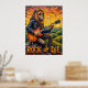 Esta trabalho de arte imaginativa mostra um leão, uma verdadeira estrela do rock com óculos de sol e uma jaqueta de couro, desencadeando "corpos selvagens" em uma guitarra elétrica de uma rocha proeminente. Seu palco é uma vasta paisagem de colinas verdes e árvores espalhadas, banhadas pela dramática luz de um sol de pôr. As braçadas texturizadas dão uma sensação crua e enérgica, capturando perfeitamente a atitude de "Rock or Die" dessa inesperada atuação de natureza selvagem.