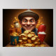 O design para "Mais Ricos em Milhões" é um trabalho de arte vibrante e abstrato que transmite brincalhão o conceito de abundância e sucesso financeiro. O texto propriamente dito é apresentado de forma destacada, com cada palavra reproduzida numa cor diferente e saturada, criando uma composição visualmente marcante e chamadora de atenção. A estética geral é caprichosa e divertida, transmitindo um sentimento de alegria, prosperidade e possibilidades ilimitadas.