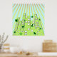 Poster Horizonte da Cidade Ecológica Verde com Folhas Flu