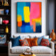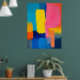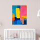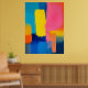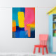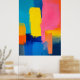 Camadas ousadas de blocos de cores intensas criam uma paisagem abstrata pulsando de energia. Azul, rosa, amarelo e laranja interagem em uma harmonia vibrante e dinâmica.