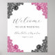 Poster Hot Pink Black Floral Lace Wedding Welcome Sign
