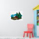 Uma pequena casa de madeira na floresta entre as árvores. Esta design parece realmente eficaz nesta Poster