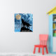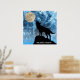 Uivando o cheio de Wolf azul Lua preto Poster. Personalize com seu texto personalizado. Uivando o Lobo Inverno azul-neve fumaça Abstrato Poster Wall Art Décor. Abstrato geométrico de inverno, azul-neve e fumaça branca com silhueta de lobo preto.