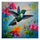 Hummingbird a cores vivas com Poster de flores. Isto gerou Bela Hummingbird desfrutando destas flores coloridas brilhantes. presente de excelente para o amante do Hummingbird em sua vida. Pareceria excelente em qualquer quarto.