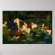 Dive into myth and lush, jewel toned beauty with Hylas and the Nymphs by John William Waterhouse. Set in a shadowed woodland pool scattered with lily pads, the painting captures the fateful moment when the young Hylas is lured toward the water by enchanting nymphs. Waterhouse’s rich color, delicate skin tones, and intricate natural details create a scene that feels both romantic and unsettling, like a dream you cannot look away from.