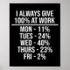 Poster I Always Give 100% At Work Funny Work Quotes Humor
