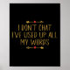 Poster I Don't Chat I've Used Up All My Words Funny Quote