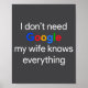 Poster I Don't Need Google, My Wife Knows Everything Funn