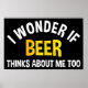 I Wonder If Beer Thinks About Me Too. This funny beer lover design is great for anyone who loves craft beer, ipa, lager and pale ale. Take this to your next visit to a bar, brewery, pub or party! If you love to visit craft beer breweries and pubs, and drink a nice cold pint of beer, this design is for you.
