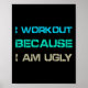 Poster I Workout Because I'm Ugly Gym Quote Tee Funny Wei