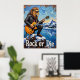 Esta pintura cativante apresenta um leão, exuberando legal confiança nos óculos de sol e numa jaqueta de couro, colocando "punhos de fogo" em um violão elétrico. Está em uma montanha derretida, coberta de neve, com vista para um lago azul vibrante com pistas de folhagem verde. As pinceladas ousadas e texturizadas dão uma sensação de energia dinâmica tanto à paisagem quanto à performance musical "Rock or Die".