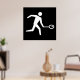 Um ícone do jogador de squash em branco sobre um fundo preto. Esta design parece realmente eficaz nestes Poster