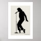 A bold black silhouette art print featuring a dynamic performer posed beside a microphone stand in a classic stage moment. Minimal, striking, and full of rhythm and attitude, this design is perfect for music lovers, dance fans, performance art collectors, and anyone who loves clean monochrome wall decor with strong visual energy.