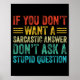 Poster If You Don't Want Sarcastic Answer Don't Ask Stud