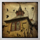 Uma velha igreja com corvos se reunindo na frente dela de forma surreal. Copyright © Gothicolors Todos os Direitos Reservados.