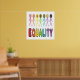 O design da igualdade é uma mensagem anti-divisão. Diferentes pessoas estão associadas à palavra "igualdade" abaixo. Trata-se de todos serem iguais independentemente de qualquer coisa. Parem com a divisão e o vamos se dão bem, como as figuras do arco-íris no gráfico.