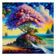 Uma bela pintura digital de uma exuberante ilha verde no meio do oceano. A ilha está coberta de árvores e flores exuberantes, e a água é um azul claro. Um pequeno barco está ancorado na baía, e algumas pessoas estão relaxando na praia. Esta pintura é perfeita para qualquer um que queira fugir para um paraíso tropical.