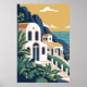 Imagem de fundo ilustrada com cor plana viagem da ilha de Santorin