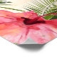Trabalho de arte com uma praia tropical moldada por aquarelas, flores de hibisco florais cor-de-rosa e folhas de palmeiras, com legenda "Bem-vindo ao Paraíso".