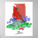 A poster print decorated with a bright red cardinal bird in a patch of vibrant purple wood violets over the state shape drawn with ink and painted with watercolor. Inspired by the state bird and state flower of Illinois. Celebrate The Prairie State! Great for college dorm room decor!