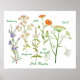 Marigold, horta, rosmaninho, marjoram, funcho, ilustração herbácea, arte de parede da cozinha pelo artista de aquarela Cheng Jing.