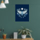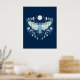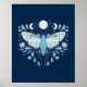 Poster de Ilustração Celestial Abstrato Azul E Branco Moderno. Este design de abstrato místico mágico apresenta uma bela ilustração intrincada da mariposa com as fases lua de cheio e lua de crescente. Adorado com flores silvestres e floresces florais. Estética feiticeira boêmica.