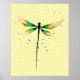 Um design de aquarela original giro de uma libélula em cores verdes e amarelas. Este design de insetos brancos e deliciosos é colorido e vibrante.