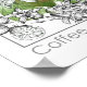 Uma poster com erva medicinal do café ilustrada com tinta e aquarela em diferentes palcos de crescimento nos ramos com algumas flores brancas com nomes comuns e botânicos na frente. Experimente este design em um cartão postal, um imã ou um notard.