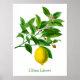 Impressão de limão num ramo de folhas (Citrus Limon) baseado em arte botânica safra, melhorada digitalmente