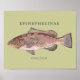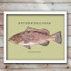 Ilustração de peixes-palhó (Epinephelinae) feita artificialmente com nomes latinos e comuns na tipografia para fãs de pesca de garoupa. O Grouper é comum na costa do golfo da Flórida (assim como em muitos outros locais), onde muitos restaurantes apresentam um sanduíche de garoupa assinado.