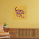 Uma ilustração de um gato-do-mato-tigre africano com listras roxas e um corpo amarelo.
