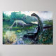 Por Charles R. Knight Título do Cheio: Ilustração de Brontosaurus na Água e Diplodocus na Terra