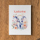 Arte para quarto de bebê com um elefante em aquarela rodeado por flores cor-de-rosa e coral. Adicione o nome na área personalizada.